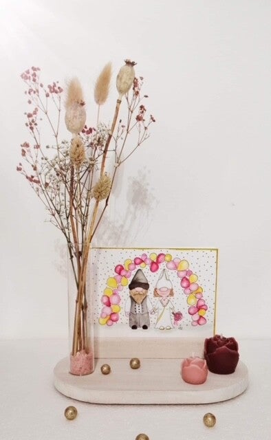 Verras een ander met deze droogbloemen, wenskaart en geurkaarsjes op houten standaard.  In het houten standaard zit een uitsparing voor de staande wenskaart. Laat jouw boodschap na bij "opmerkingen" en laat ons weten wie u wilt verrassen. Wij bezorgen het geschenk dan rechtstreeks aan deze persoon met jouw persoonlijke boodschap op de wenskaart.